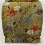 袋帯 美品 秀品 色紙 花鳥 金糸 箔 鶯色 六通 正絹 中古 在庫一掃