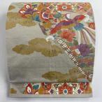 袋帯 秀品 華文 尾長鳥 箔 金彩 ベージュ 六通 正絹 中古 在庫一掃