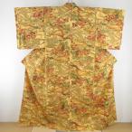 小紋 平安風景に枝花文様 袷 バチ衿 黄色 正絹 仕立て上がり カジュアル着物 身丈160cm