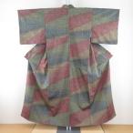 ys7462722; 幾何学模様織り出し手織り紬単衣着物【アンティーク】【着】