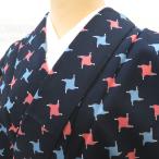 ウール着物 ウールきもの 紺地 水色×ピンク 単衣 バチ衿 カジュアルきもの 仕立て上がり 普段着物 身丈149cm