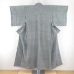 【中古】 紬 正絹グレー地に絣格子文様 単衣着物 裄62.5 SSサイズ シーズン秋