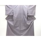 紬 着物 横縞模様 幾何学模様 紫色 正絹 袷 バチ衿 カジュアル 仕立て上がり着物 身丈153cm