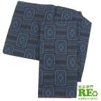 中古 紬 紬着物 レディース 正絹 紺 幾何学 仕立て上がり着物 リメイク向き 着用不向き 返品・キャンセル不可