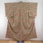 付下げ 身丈155cm 裄丈62cm S 袷 葉柄 灰緑 正絹 秀品 中古 在庫一掃
