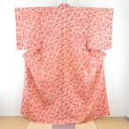 小紋 赤ピンクx白色 花籠模様 正絹 袷 広衿 仕立て上がり着物 身丈157cm