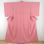 色無地 袷 ピンク色 紋入り 一つ紋 剣片喰紋 広衿 正絹 仕立て上がり 身丈160cm