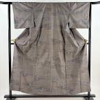 紬 身丈159cm 裄63cm レディース 単衣 亀甲 裄Mサイズ 初夏・初秋用 正絹(シルク)灰色 難有り