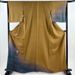 付下げ 身丈165cm 裄丈66cm M 袷 草花 霞 ぼかし 染め分け 山吹茶色 正絹 秀品 中古 在庫一掃