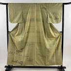 付下げ 身丈155cm 裄丈62cm S 袷 紬地 風景 樹木 よもぎ色 正絹 秀品 中古 在庫一掃