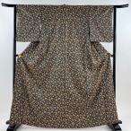 美品 紬 身丈160.5cm 裄丈63.5cm S 袷 花菱 草花 黒灰 正絹 秀品 中古 在庫一掃