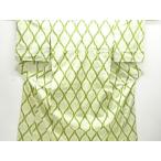 小紋 黄緑x緑色 幾何学模様 正絹 袷 バチ衿 仕立て上がり着物 身丈151cm