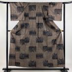 紬 身丈160cm 裄丈64cm M 袷 花 幾何学 焦茶色 正絹 秀品 中古 在庫一掃