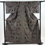 美品 紬 身丈152.5cm 裄丈62cm S 袷 草花 焦茶色 正絹 秀品 中古 在庫一掃