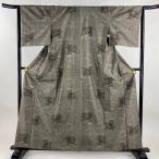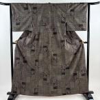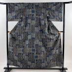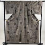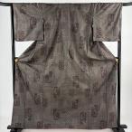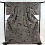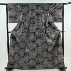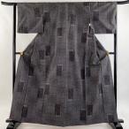 紬 身丈161.5cm 裄丈64cm M 袷 華文 色紙 墨色 正絹 秀品 中古 在庫一掃