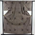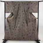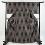 小紋 身丈157cm 裄丈62cm S 袷 格子 灰茶 正絹 秀品 中古 在庫一掃