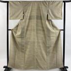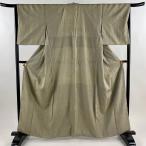 小紋 身丈160.5cm 裄丈66cm M 袷 紬地 縞 幾何学 絞り 灰緑 正絹 秀品 中古 在庫一掃
