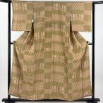小紋 身丈155.5cm 裄丈62cm S 袷 七宝 市松 縮緬 黄土色 正絹 秀品 中古 在庫一掃