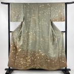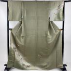 付下げ 身丈166.5cm 裄丈64.5cm M 袷 雪輪 草花 金銀彩 刺繍 茶緑色 正絹 秀品 中古 在庫一掃