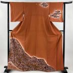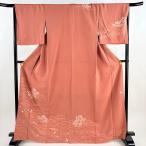 訪問着 身丈164.5cm 裄丈62.5cm S 袷 草花 金彩 絞り 茜色 正絹 秀品 一つ紋 中古 在庫一掃