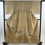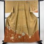 訪問着 身丈162cm 裄丈63cm S 袷 雪輪 枝花 金彩 染め分け 薄茶色 正絹 秀品 中古 在庫一掃