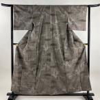 美品 紬 身丈156cm 裄丈63cm S 袷 ヱ霞 花唐草 灰茶 正絹 秀品 中古 在庫一掃