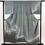 付下げ 身丈151.5cm 裄丈64.5cm M 袷 落款あり 霞 ぼかし 青灰色 正絹 秀品 中古 在庫一掃