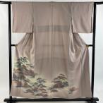 訪問着 身丈153cm 裄丈63.5cm S 袷 松 家屋 金彩 ぼかし 薄茶色 正絹 秀品 中古 在庫一掃