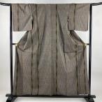 紬 身丈165cm 裄丈63cm S 袷 縞 黒灰 正絹 秀品 中古 在庫一掃
