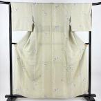小紋 身丈158cm 裄丈66cm M 袷 うさぎ 草花 灰緑 正絹 秀品 中古 在庫一掃