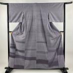 付下げ 身丈157.5cm 裄丈62cm S 袷 紬地 段縞 灰紫 正絹 秀品 中古 在庫一掃