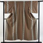 紬 身丈150.5cm 裄丈63cm S 袷 矢羽根 縦縞 茶色 正絹 秀品 中古 在庫一掃