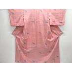 ys7424504; 幾何学模様織り出し手織り紬単衣着物【アンティーク】【着】