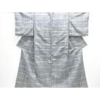 ys7389370; 格子織り出し 手織り紬単衣着物【アンティーク】【着】