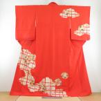 訪問着 箔 花蝶丸文様 橙色 袷 広衿 正絹 紋なし フォーマル 仕立て上がり着物 身丈164cm