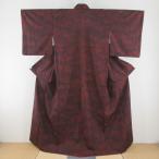御召し 身丈154cm 裄64cm レディース 袷 横段柄 裄Mサイズ 秋冬春用 正絹(シルク)赤茶色 難有り