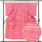 色無地 身丈156cm 裄64cm レディース 袷 松 裄Mサイズ 秋冬春用 ポリエステル 桃色 やや難