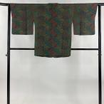 美品 道行 身丈76cm 裄丈63cm S 和装コート 角衿 寄せ柄 松皮菱 灰緑 正絹 秀品 中古 在庫一掃