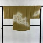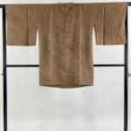 道行 身丈97.5cm 裄丈64.5cm M 和装コート 角衿 草花 葉柄 茶色 正絹 秀品 中古 在庫一掃