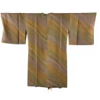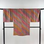 道中着 コート 袷 リサイクル 正絹 手染め グレー 斜め縞 カジュアル 中古 仕立て上がり 身丈109 裄71 L〜TLサイズ みやがわ sb14639