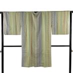 美品 道行 身丈85.5cm 裄丈68cm L 和装コート 角衿 落款あり 縞 地紋 灰緑 正絹 秀品 中古