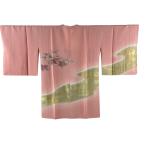 美品 道行 身丈87cm 裄丈64cm M 和装コート 角衿 葉と実 霞 金彩 ぼかし ピンク 正絹 秀品 中古