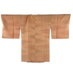 道行 身丈125.5cm 裄丈67.5cm L 和装コート 角衿 地紋 薄オレンジ 正絹 名品 中古