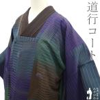 美品 道行 身丈135cm 裄丈68cm L 和装コート 角衿 縦縞 縦ぼかし 茶紫 正絹 逸品 中古