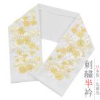 半衿 刺繍半衿 刺繍 日本 丹後 金糸入り ポリエステル 白 刺繍半襟 和装小物 着物 n00027