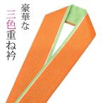 重ね襟 振袖 袴 重ね衿 伊達襟 色合わせ 3重 三重 三色 リバーシブル オレンジ/金/黄緑 No.6 成人式 卒業式