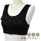 日本製 和装ブラジャー ブラック 3サイズ 和装ブラ フロントファスナー 黒 M L EL 2L LL レース 補正下着 体型補整 着物用下着 肌着 下着【新品】