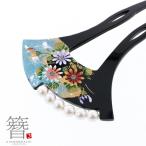 かんざし バチ型 「黒地 パール 小菊 #804」 銀杏型 高級 簪 礼装用 フォーマル着物 和装 留袖 黒留袖 訪問着 色無地 結婚式 パーティー (メール便不可)<H>