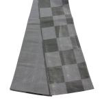 美品 半幅帯 名品 市松 麻の葉 灰色 正絹 中古
