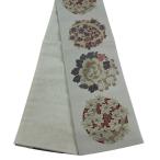 美品 半幅帯 名品 撫松庵 花丸文 鞠 箔 唐織 クリーム 正絹 中古